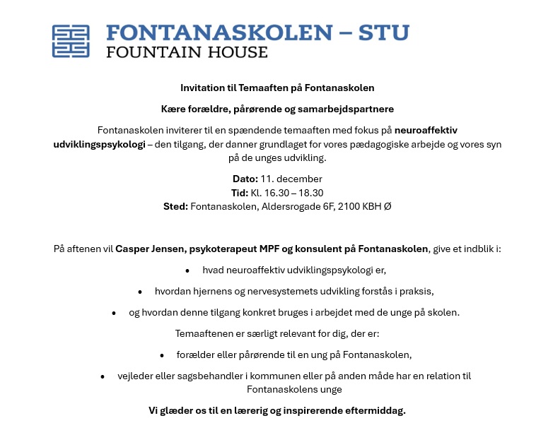 11.12: Temaaften på Fontanaskolen kl. 16.30-18.30
